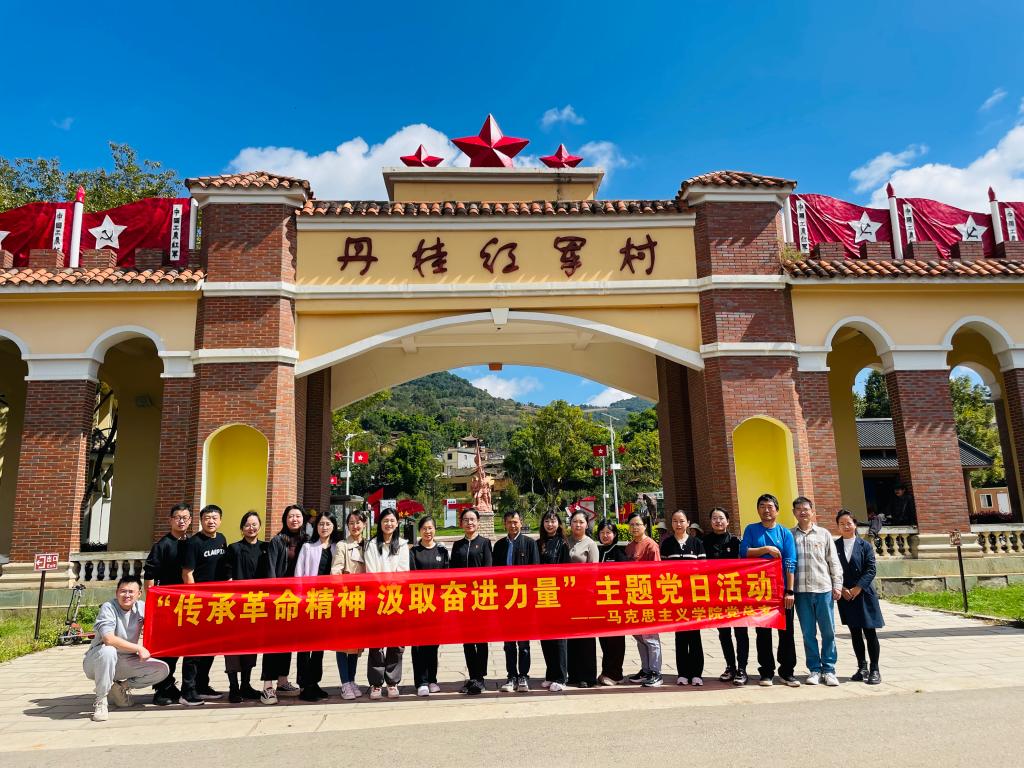 10月25日,馬克思主義學院黨總支組織黨員干部到尋甸縣柯渡紅軍長征紀念館開展黨性教育活動。此行旨在通過實地感悟革命歷史,讓每一位教師都能深刻領悟革命精神,傳承紅色基因,汲取新時代前行的動力,奮力走好屬于我們的新時代長征路。途中,帶班教師精心策劃,組織全體成員誦讀《請黨放心,強國有我》誓詞,分享紅色經典故事,齊唱激昂紅歌,以此緬懷革命先烈,點燃內心的愛國熱情,為即將開始的參觀學習營造濃厚氛圍。抵達柯...