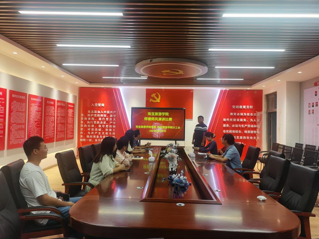 9月20日上午珠寶旅游學院分工會在勘物樓黨建活動室舉行師德師風演講比賽。本次大賽由珠寶旅游學院黨委書記袁佳主持。比賽伊始,袁佳書記表示為了全面展示新時代教師的風采,大力弘揚教育家精神,學院分工會舉辦了本次師德師風演講比賽。期望各位教師能圍繞演講主題,結合親身經歷和獨到見解,以鏗鏘有力的語言和真摯動人的情感,共同表達對教育事業的熱愛與支持。參賽教師們慷慨激昂、富有感染力的演講,贏得了觀眾的陣陣掌聲。經過激烈角逐,比賽評出一等獎兩名、二等獎三名、三等獎四名。